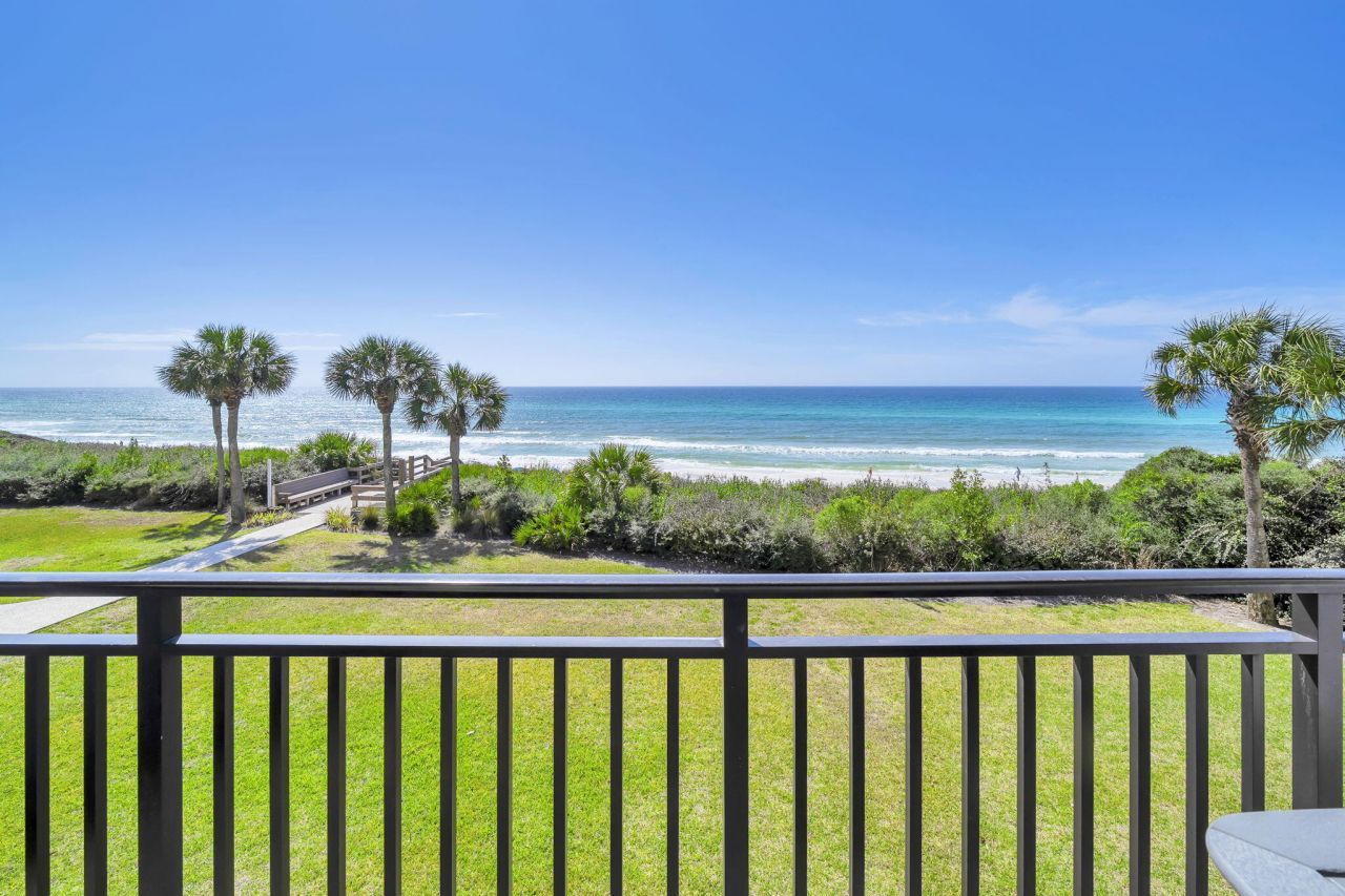 Answer the call of the ocean in this Gulf-front one-bedroom, two-bath condo with hallway bunks in Building A at the coveted Palms of Seagrove, just south of 30A. Enjoy effortless access to sugar-white sands and emerald waters, plus private beach access with seasonal chair service.Relax by the community swimming pool or rinse off in the convenient outdoor showers after a day at the beach. Unit A-8 has a strong rental history, making it a perfect investment or personal getaway.Take in sweeping Gulf views from the kitchen and living area and unwind each evening on your private balcony as the sun sets over the Gulf, painting the iconic 30A beaches in golden light. Walk to nearby shopping, dining, or hop on your bike to explore the scenic 30A bike path. Your slice of Paradise waits. and Watercolor. Your slice of paradise awaits.